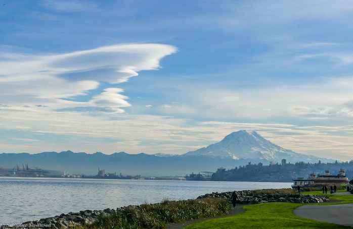They sometimes hover over Mt. Rainier, looking quite like a UFO, and did you know it was here the phrase was coined, though called flying saucers first. I often see Mt. Rainier wearing a cloudy cap, but unfortunately, often while driving on the highway.