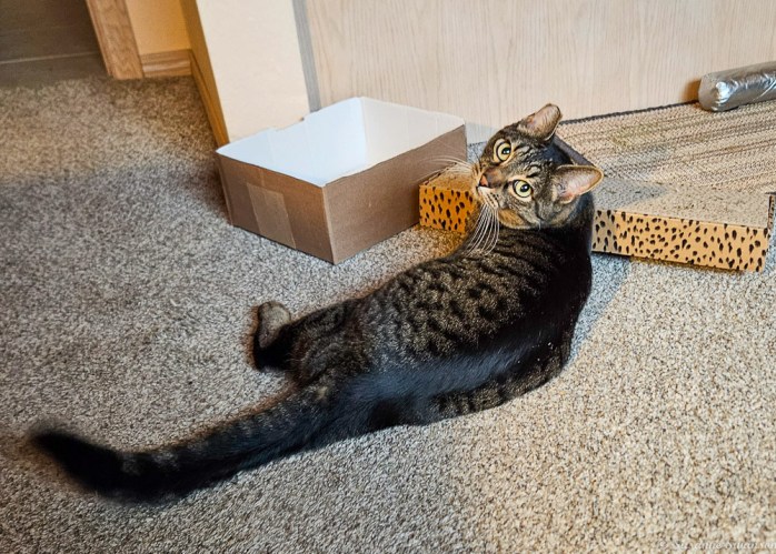 Another springlike day, and Tiger went out to enjoy; not bad for an 18-year-old cat.