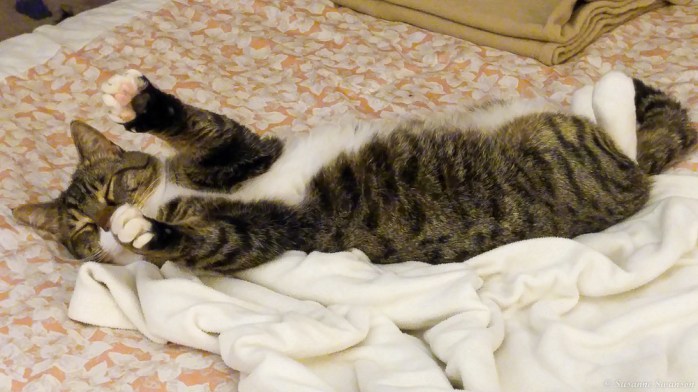 We visited the hotel to take a look at Tiger and his brother, Shadow. It was Tiger who won us over. He stretched out before us long and lean – looked at us with gorgeous green eyes – and asked us to take him home. We did. And his brother, too.