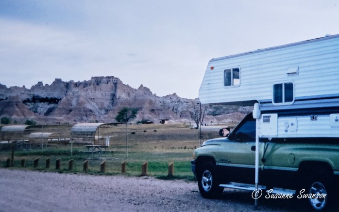 After a long drive the next day with stops by Sturgis and famous Wall Drugs, we made it to Wyoming and set up camp in Buffalo at 4,600 feet. Temperatures plummeted that night and we woke up to snow on the Big Horn Mountains nearby. Does it seem that I’m rushing the telling? That is just how it felt at this point in our trip. Though the scenery was grand, magnificent in fact, we were back in the West now and so close to home we could almost smell it and Bob’s foot was heavy on the gas pedal.