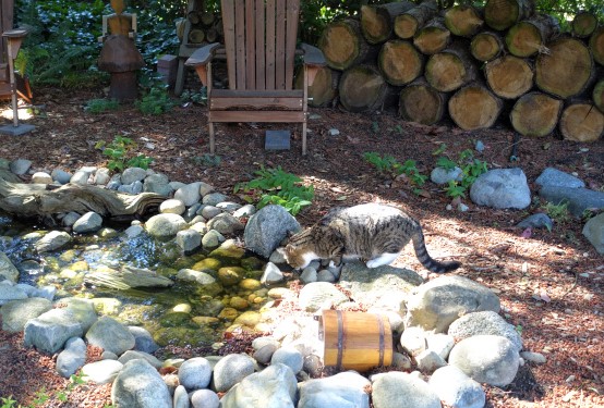 I visit the many and varied watering holes throughout the day. They are much better than what is served indoors. (Sue, did you hear that?) I like bird flavored water the best for taste. And the stream is most refreshing.