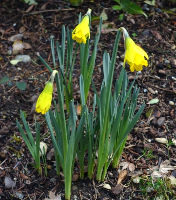 Today the sun made an appearance through the cloud cover, and I stepped outside for fresh air and to survey the garden. There is much to be done. Still, I found miniature daffodils in bloom, their brilliant yellow heralding spring to come.
