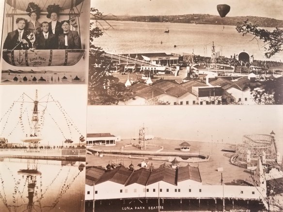 My great grandfather was known for his pictures and postcards of early Seattle and occasionally I see them referenced in the paper or hung somewhere. But it was still special and unexpected to see his pictures of Luna Park on the wall at Spuds. As far as rain, goes, I’m pretty sure we have you beat, at least this year. We just keep breaking records. Combined rain for Feb and Mar was the most recorded for the same period since they started keeping records. We look at the forecast to determine what we can get out and do and stay dry. Yesterday was the clear day for the week though it was raining heavily again last night. ~ Sigh~ On the other hand, yes it is so beautiful here with the mountains, the water and the evergreens. I guess that’s why we put up with the weather! 🙂