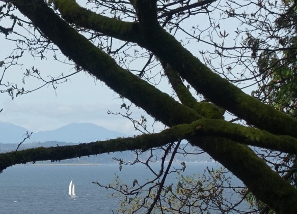 After a short drive we arrive at the park and hike a lovely trail through some patches of old growth forest to the bluff overlooking Puget Sound.