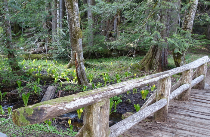 After our visit we head back down for a short hike at Longmire in an area where meadows meet the forest. We take the boardwalk through hot springs, skunk cabbage and fragrant woods.