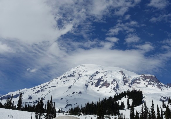 We arrive at the south entrance to the Park at Longmire, and after lunch at the historic National Park Inn, take the drive up to the Paradise Visitor center.