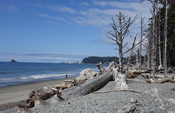 We stop by Forks and it’s decision time as there really is a fork in the road: head west or south? South would take us to Hwy 101 and Kalaloch, the more traveled route and most popular beach in the Park. Beautiful yes, but we’ve done it many times before. West will take us on 110 and the promise of new, unexplored beaches. We opt to take the road less traveled and head west to Rialto Beach. We’re glad we did!