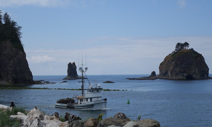 It rained overnight and we wake up to gray skies and drizzle. It seems a good bet that more rain is on the way, so we decide to take a chance elsewhere and head for the rugged Washington coast.
