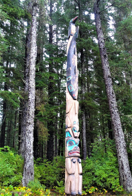 As we stopped to admire them, a very talkative raven spoke urgently to us from a nearby tree and I began to understand its prominence in Tlingit culture.