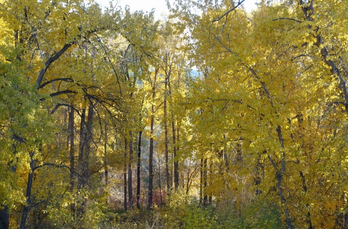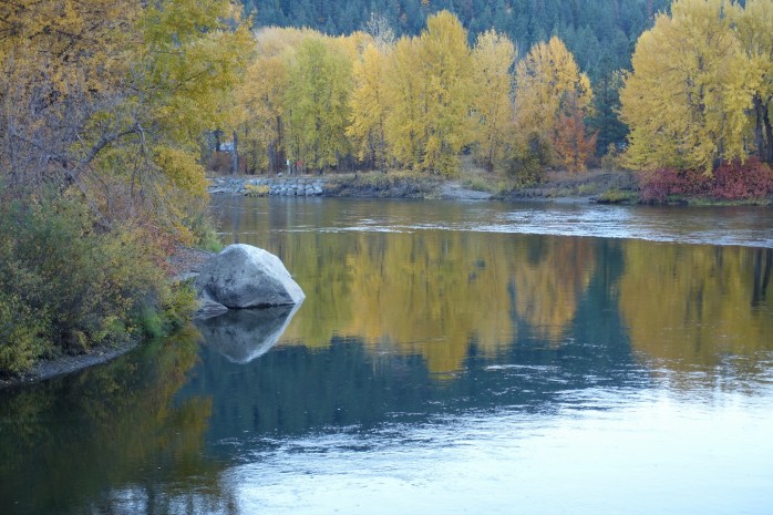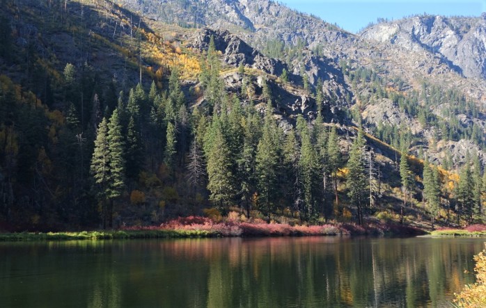 The sun was shining and the road was bare as we headed northeast on Highway 2, surrounded by mountains and rivers, all lit up with fall color.