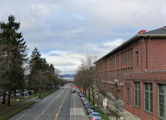 But why go? Was I hoping to run into childhood friends? (Maybe.) Did I hope to trigger memories that were no doubt bound up in those indescribable hallway sounds and smells? Warm sandwiches left in lockers, new shoes shuffling on heavy floors, recess bells? Whatever the reason, I made the trek to the old school on Delridge Way, and was met by that overpass, still standing, though empty and lonely of children.