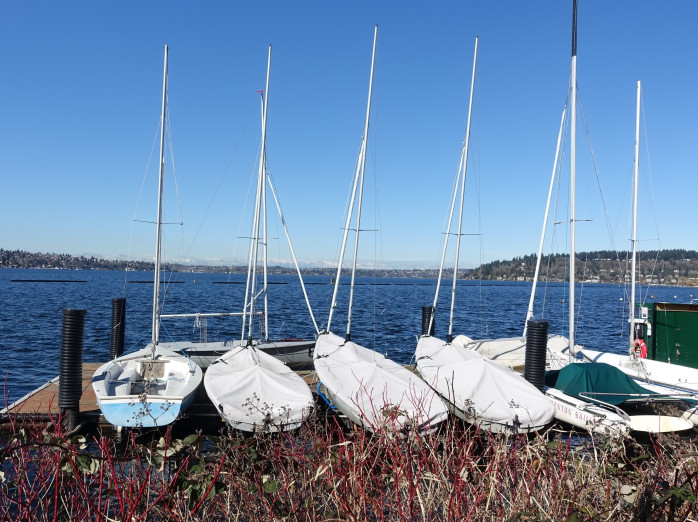 It hardly seems fair to call it a winter day, not with temperatures in the 50’s and the sky as blue as the lake below. And though the calendar does indeed say it’s winter I put on my lighter jacket and we headed to one of our favorite walks at nearby Gene Coulon Park in Renton. With fresh air, sunshine, paved trail, lake and mountain views, there’s always something new to see. Today it was men in orange suits engaged in a training exercise; not a bad day’s work I would say.