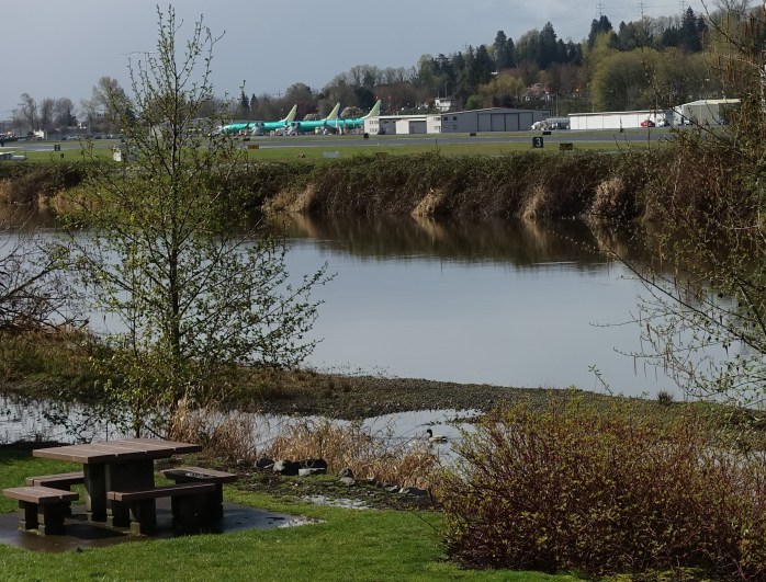 The Cedar River Trail follows the river north into Lake Washington. On one side of the river is the Renton Boeing Plant, that recently turned out its 10,000th 737. On the other side is the Renton Municipal Airport, which not only serves Boeing, but also other small planes.