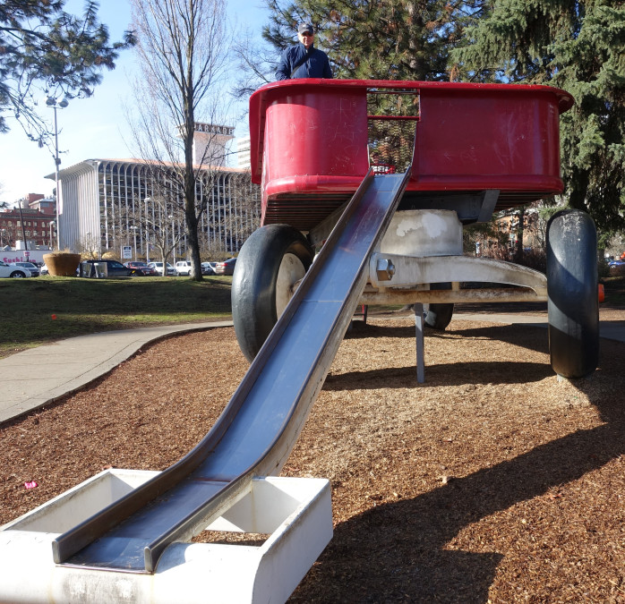 Spokane lies almost 300 miles east of Seattle making it a 5 hour drive without stops. It seems even farther because the 2 cities are so different from each other: in geography, size, weather, traffic, and even politics. On a recent trip to Montana we decided to spend the night in Spokane and visit Riverfront Park, site of the 1974 World’s Fair, Expo ’74. Better late than never.