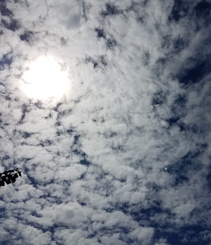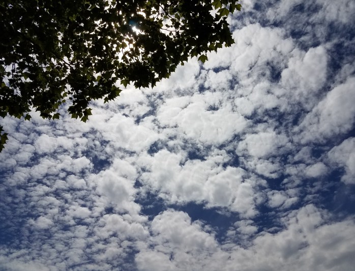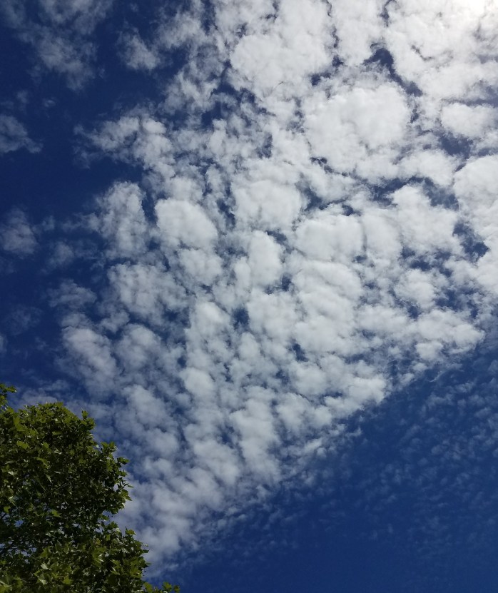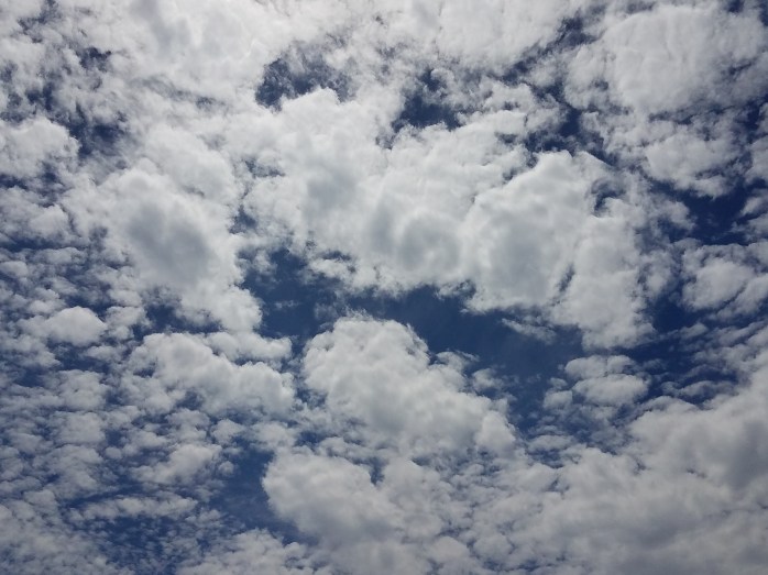 Thick and curdled. Together and alone. Pulled apart and strewn about. Each lap revealed new shapes and sizes, new angles and accents as the clouds stayed put or drifted in the sky, brilliant in white and full of inspiration to imagination.