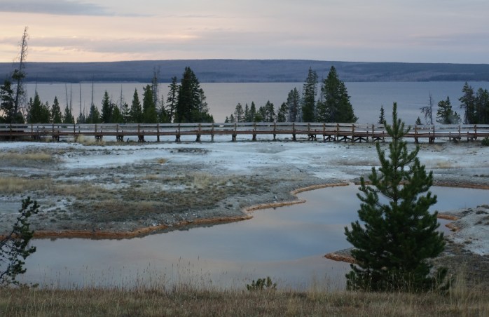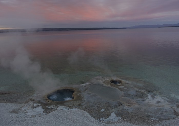 After a lovely birthday dinner at the Lake Hotel, we stopped by West Thumb Geyser Basin on our way back to Grant Village, just in time for sunset. It was perfect.