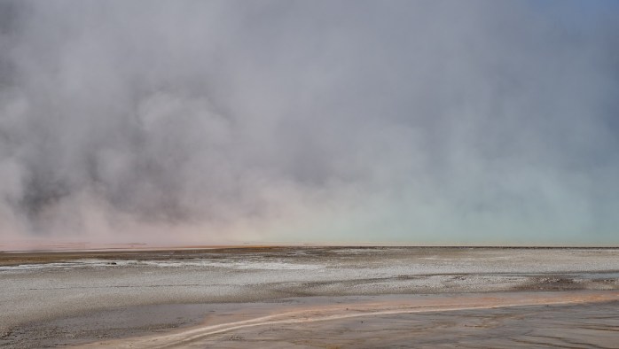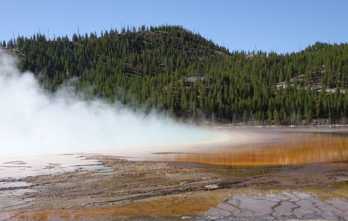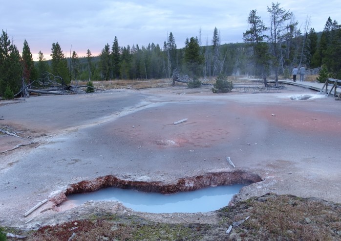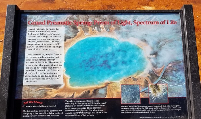 Finally I’ll close with the largest hot spring in the Park, and third largest in the world, Grand Prismatic Spring, 370 feet in diameter and 121 feet deep.