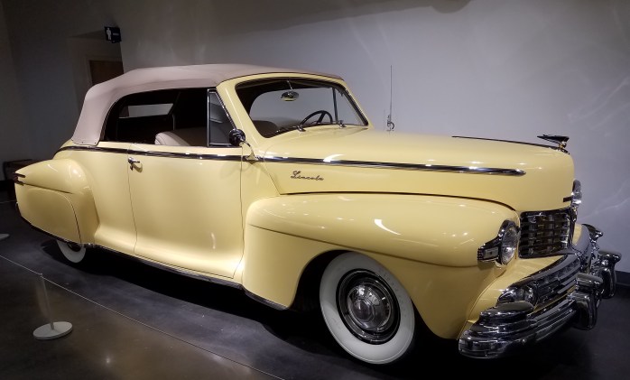 How about this 1947 Lincoln? I wish it was in my garage but I found it at the LeMay Car Museum in Tacoma. It reminds me of an old Mercury we had when I was a kid. The era I guess. It was long and smooth and rounded and yellow, and could hold the whole family with all five kids. I can remember standing on the back seat of that car – it was like a sofa and no seatbelts in those days – holding an ice cream cone and when there was a bump in the road I anointed the car’s headliner with chocolate ice cream. I can still see that smudged imprint on the interior.