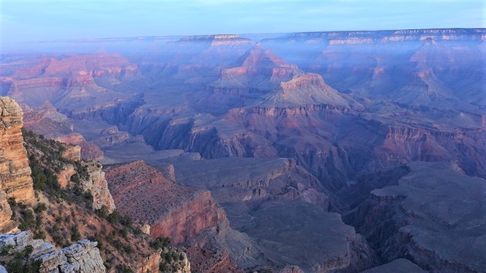 We spent a few days at the Grand Canyon last year and got to experience its magnificent beauty from many angles at different times of day. The picture below was taken while the sun was rising near Mather Point.