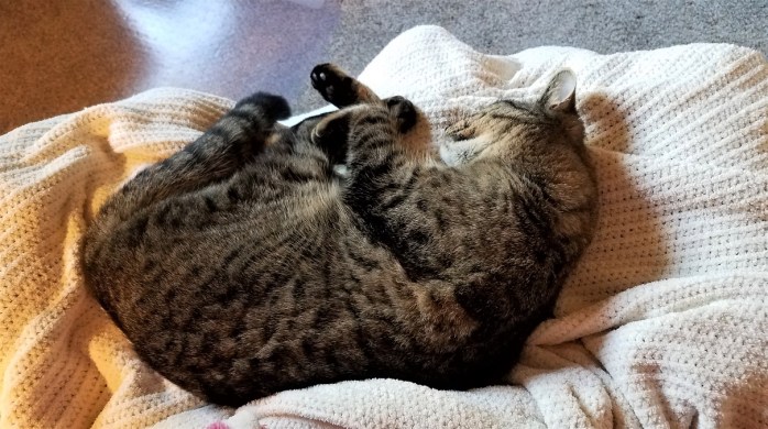 Love it! They really seem to like your (or should I say “their”?) new chair. Foster isn’t much of a “lap cat” though he was when he was a kitten. I’m wondering if he will like to snuggle more as he gets older. Lately he’s either asleep or in “play mode” 😀not much in between.