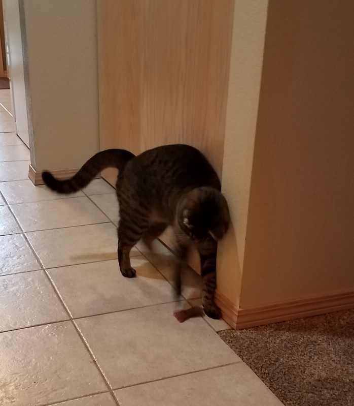 Thanks Pete. He’s so fun to watch with Fishy! He seems to prefer it to his bigger toys but it’s so easy to lose. I wanted to get a good shot of him leaping in the air but he’s too fast for me. 😁