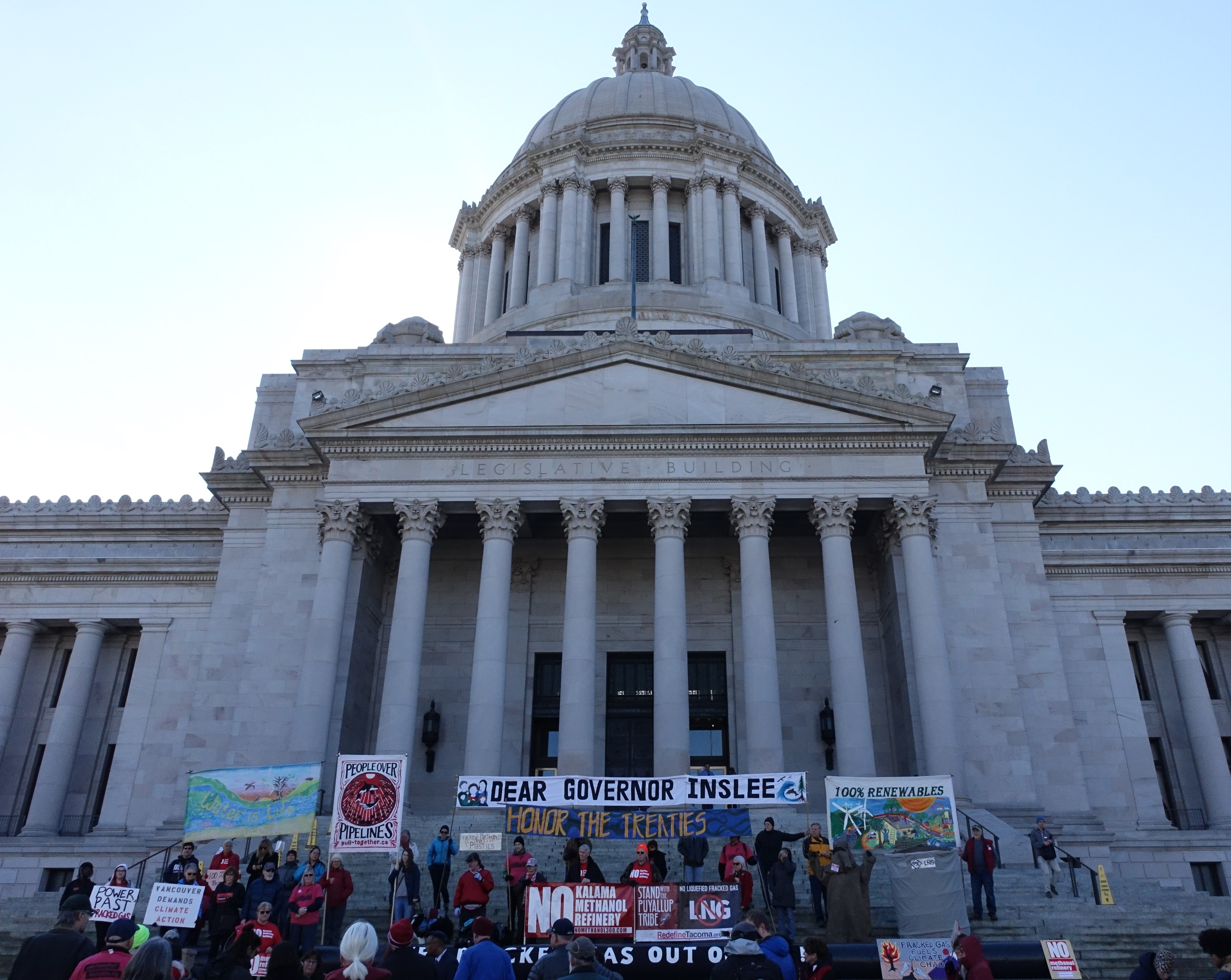 As we approached the building we were greeted by a peaceful demonstration on the front steps – nothing like a good protest to prove that democracy is working. This one was lobbying against a proposed methanol plant in Kalama on the Columbia River, that would use natural gas obtained through fracking. (Do we really want to stir things up with fracking in earthquake country?? I don’t think so.)