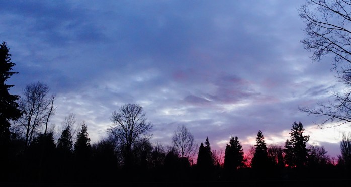 It was cold today – there were even tiny snowflakes at times. So other than a trip to the grocery store I put off today’s walk and stayed inside; until around 5:45 when I looked out my window and saw the sun beginning to set. It was finally time for some fresh air and I walked to the park and captured this cloudy winter sunset.