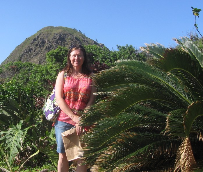 Don’t I look happy? Yes, I was. But by then we’d had enough of the scary road and kept moving on, not even stopping for the famous Nakalele Blowhole which required a short hike under the burning sun and which they also warned people about since some tourists had been swept away by waves. (Um, I think we’ll pass.)