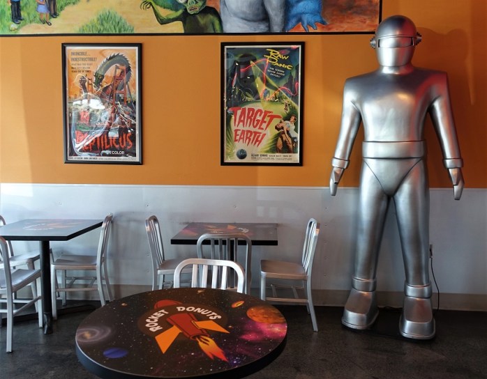 Once inside you’re greeted by this big guy and other movie memorabilia from the science fiction of the fifties. At the Fairhaven location you’ll also be able to watch old Buck Rogers movies -. and just so you know – that’s waaaay before my time. 🙂