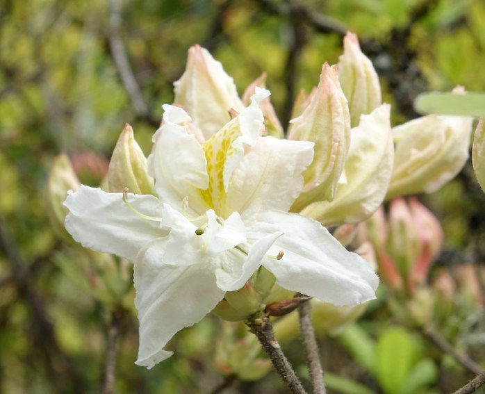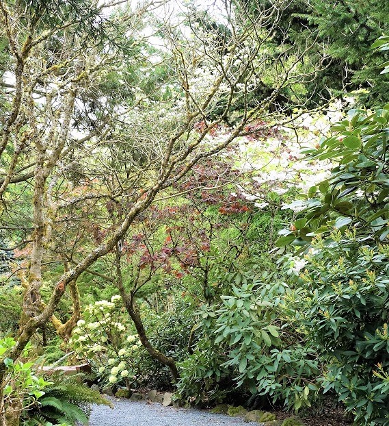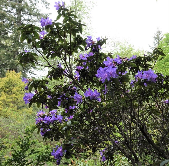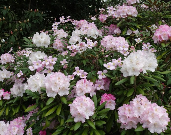 I walked the path next to the border where rhododendrons and azaleas of all colors were in various stages of bloom,