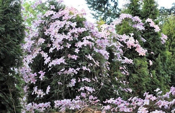 It shined on the garden beds anchored by the clematis which is still the star of the show.