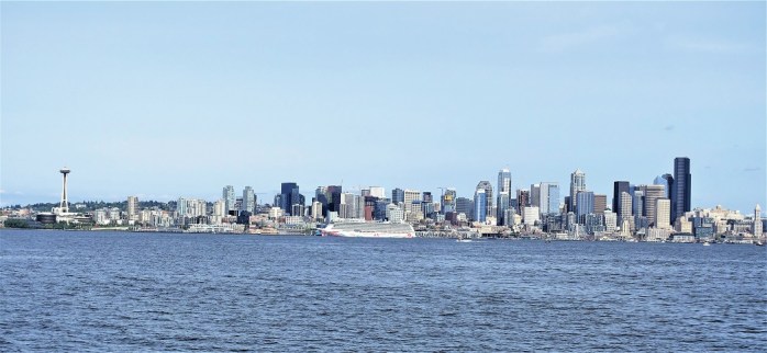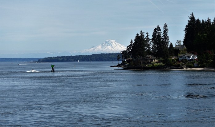 She grew bigger and bigger to the south as we crossed Puget Sound and the Seattle skyline came into view.