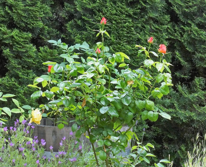 I love roses and try my best to grow them in my garden. It’s not always easy. The shrubs can become scrawny and the leaves spoiled by blackspot. The buds may be few or may not open at all. Last year I took out the more troublesome ones and moved the others to my garden beds in back where they get more sunshine.