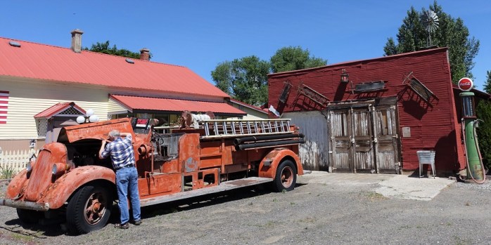 On our recent travels through Eastern Washington we passed through the tiny town of Douglas and found this old fire truck for sale.