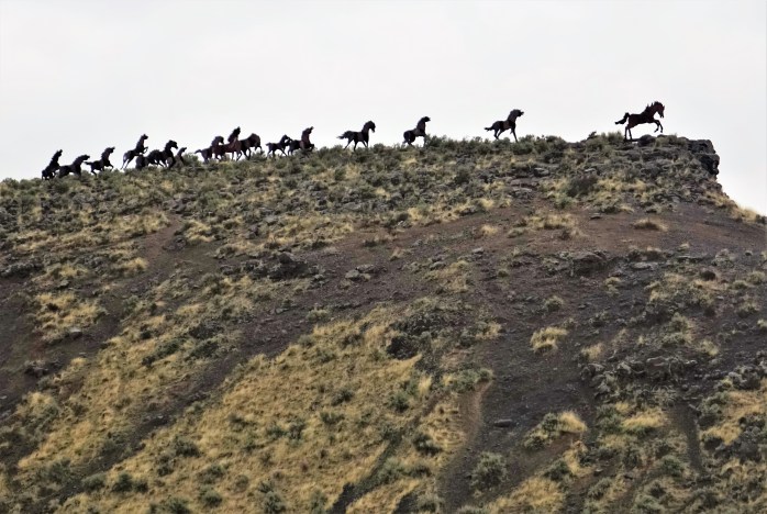 Wild horses couldn’t keep me from stopping for these stallions, galloping on a bluff high above the Columbia River in Vantage, Washington.