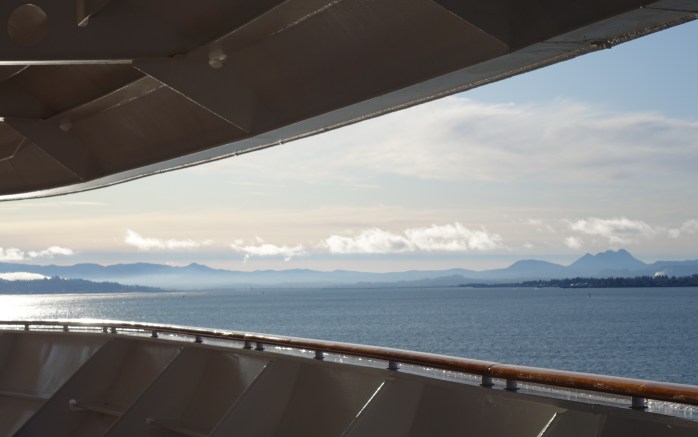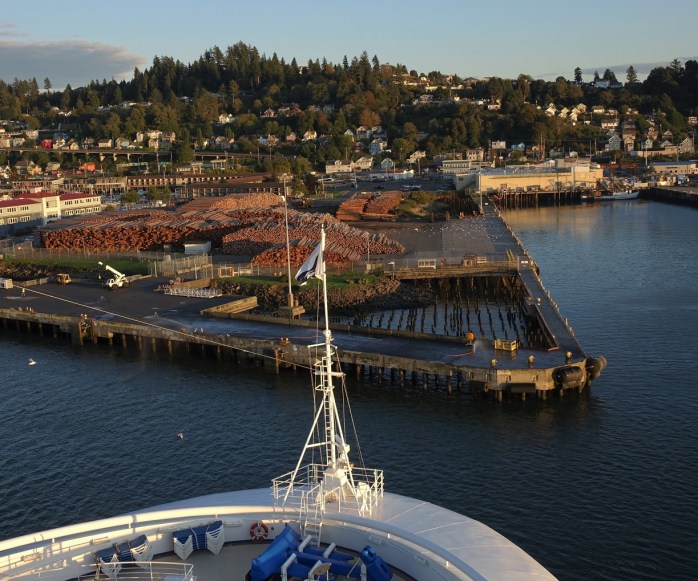 After coffee and a light breakfast I went down to the Promenade Deck for a walk around the ship as we approached the mouth of the Columbia River. This was the view north, of Washington’s Cape Disappointment.
