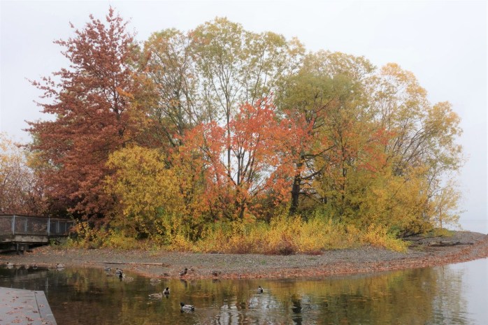 I took a walk at Coulon Park and despite the rain and milky sky, the fall colors couldn’t have been better.