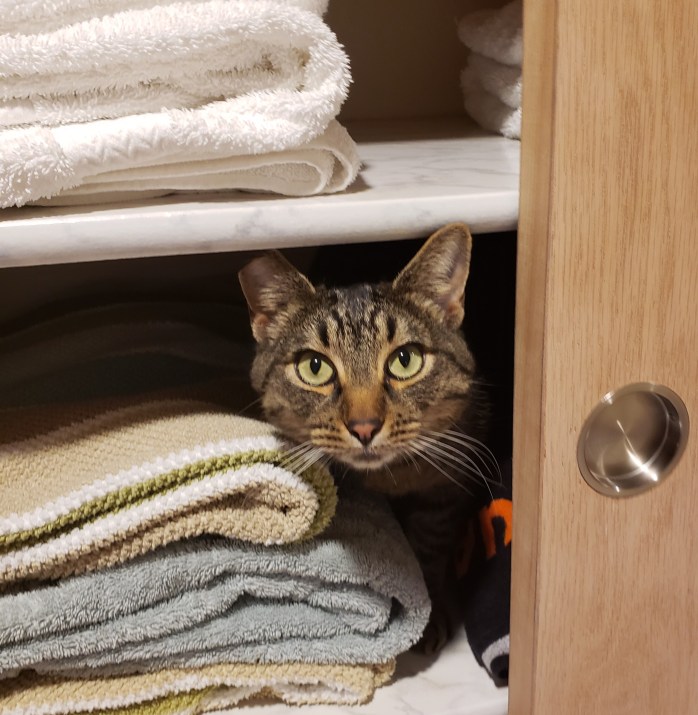I had forgotten until I saw this picture about the time Kitty had her kittens in my brother’s pajama drawer.