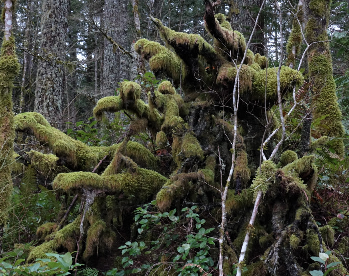 It will eventually be swallowed by fungus, moss and ferns as many stumps and roots are, creating mysterious life forms;