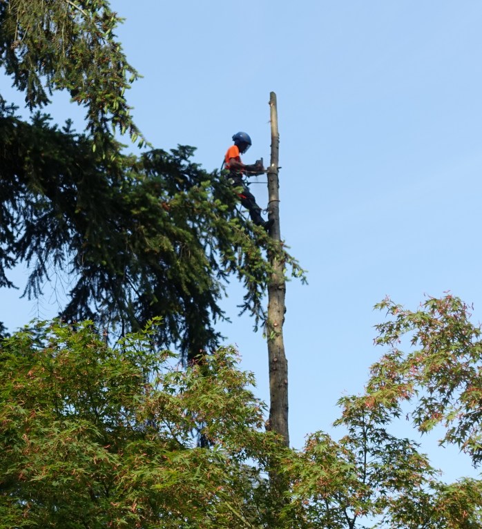 We have plenty of other trees in our yard and weren’t sure a snag was necessary but decided to take his advice and leave it standing. It would be nice to have a woodpecker take up residence there.