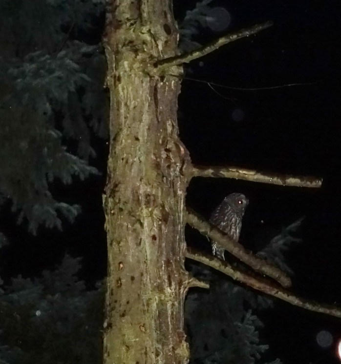Thank you! The picture’s not great since it was dark and rainy but I was happy to get it at all. It’s amazing that you saw one during the day! I loved seeing the owl but immediately worried about the kitties. For now I am definitely keeping them in at night. I kind of hope the owl will move on.