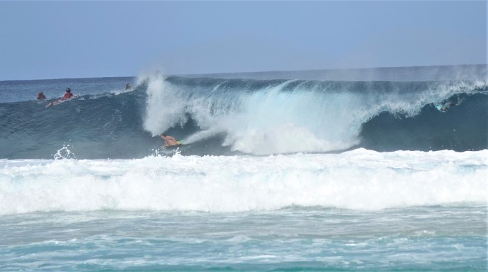 Yes, on our recent trip to Oahu – before the world went into quarantine – we spent four nights on the North Shore next to the Seven Mile Miracle, the most concentrated stretch of big wave surfing on earth.