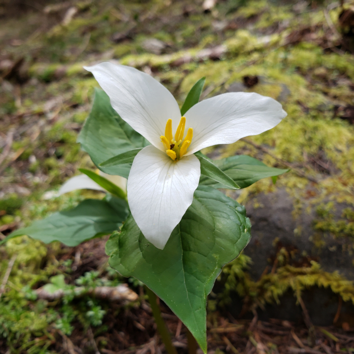 and the gentle beauty of the trilliums springing from the forest floor below.