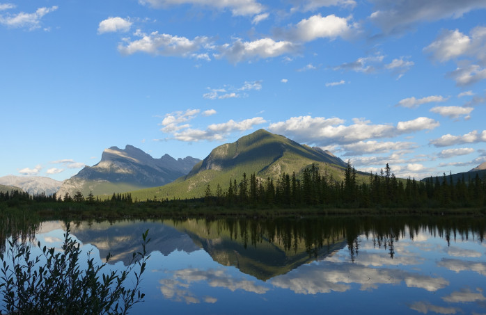We’ll start in Banff with Vermillion Lakes where you’ll see the mountains reflected in its quiet waters.