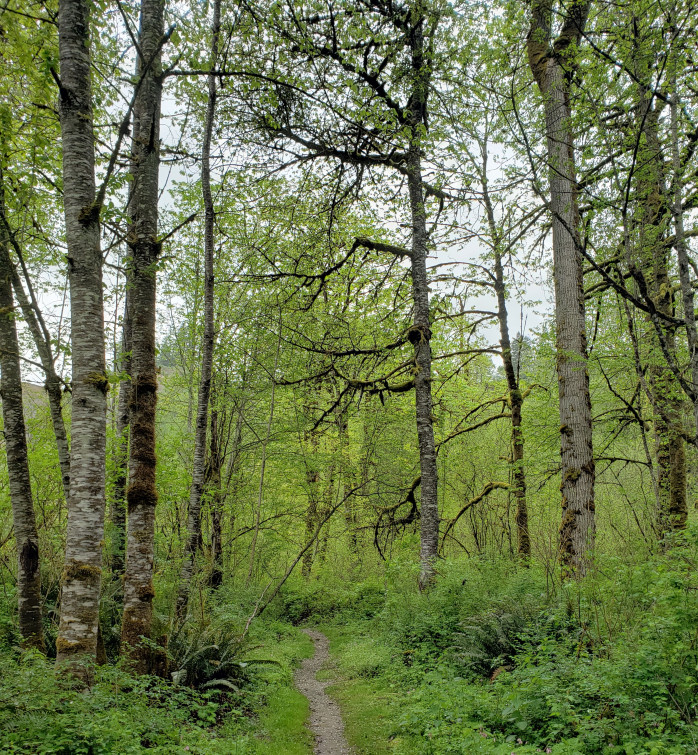 It had been too long since we’d ventured out. Perhaps the rain had gotten to us. Or maybe it was the quarantine blues. Whatever it was, we shook it off yesterday and headed to Flaming Geyser State Park, stopping short of the entrance but finding easy access to a river trail nearby.