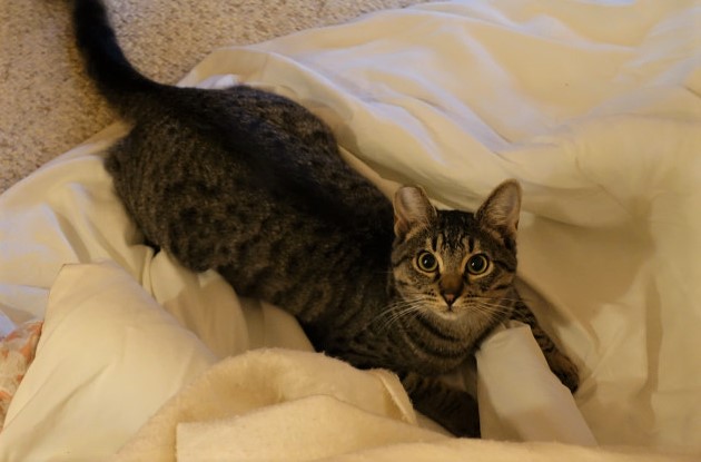 “Well. Yes. But I mean on the blog. It was four years ago that we brought you home from Seattle Humane. You looked so sweet and innocent back then. Little did we know …”