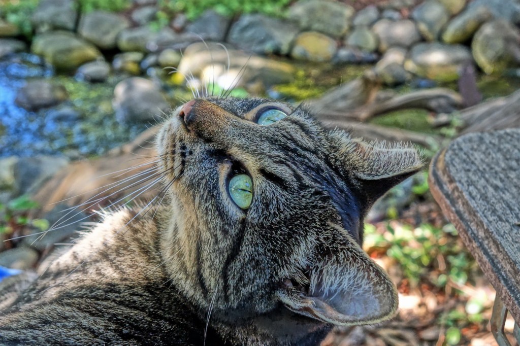 He was on my lap and I think he was looking for a head scratch! 😻
