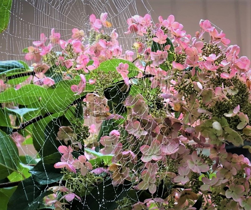 Category: GardensTags: Autumn, Fall, Flowers, Gardens, Hydrangeas, Soos Creek Botanical Garden, spiderwebs