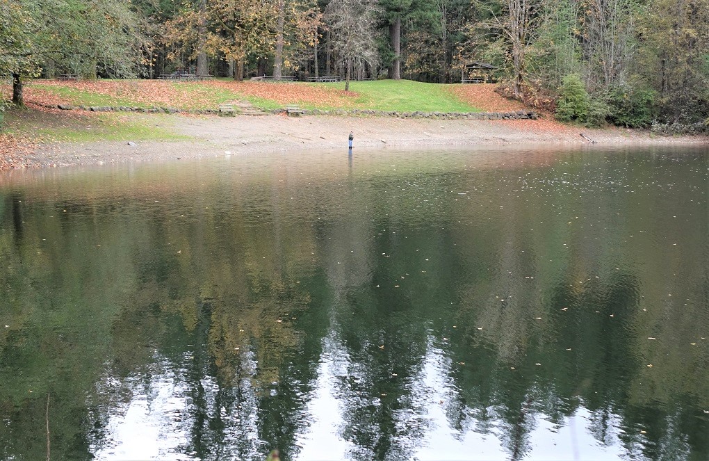 Deep Lake absorbed the surrounding colors of ochre and reflected them back while my husband practiced casting.