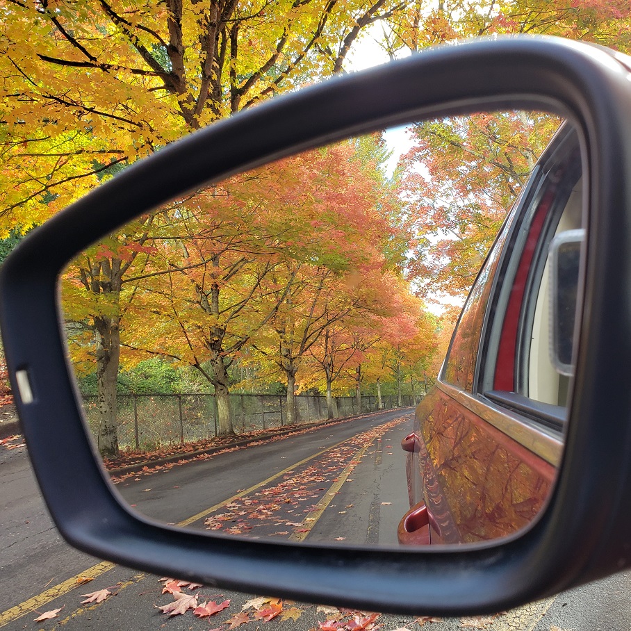 Oh such a great photo in the rear view mirror, Susanne. Here in MN we have a view of 5″ of snow.